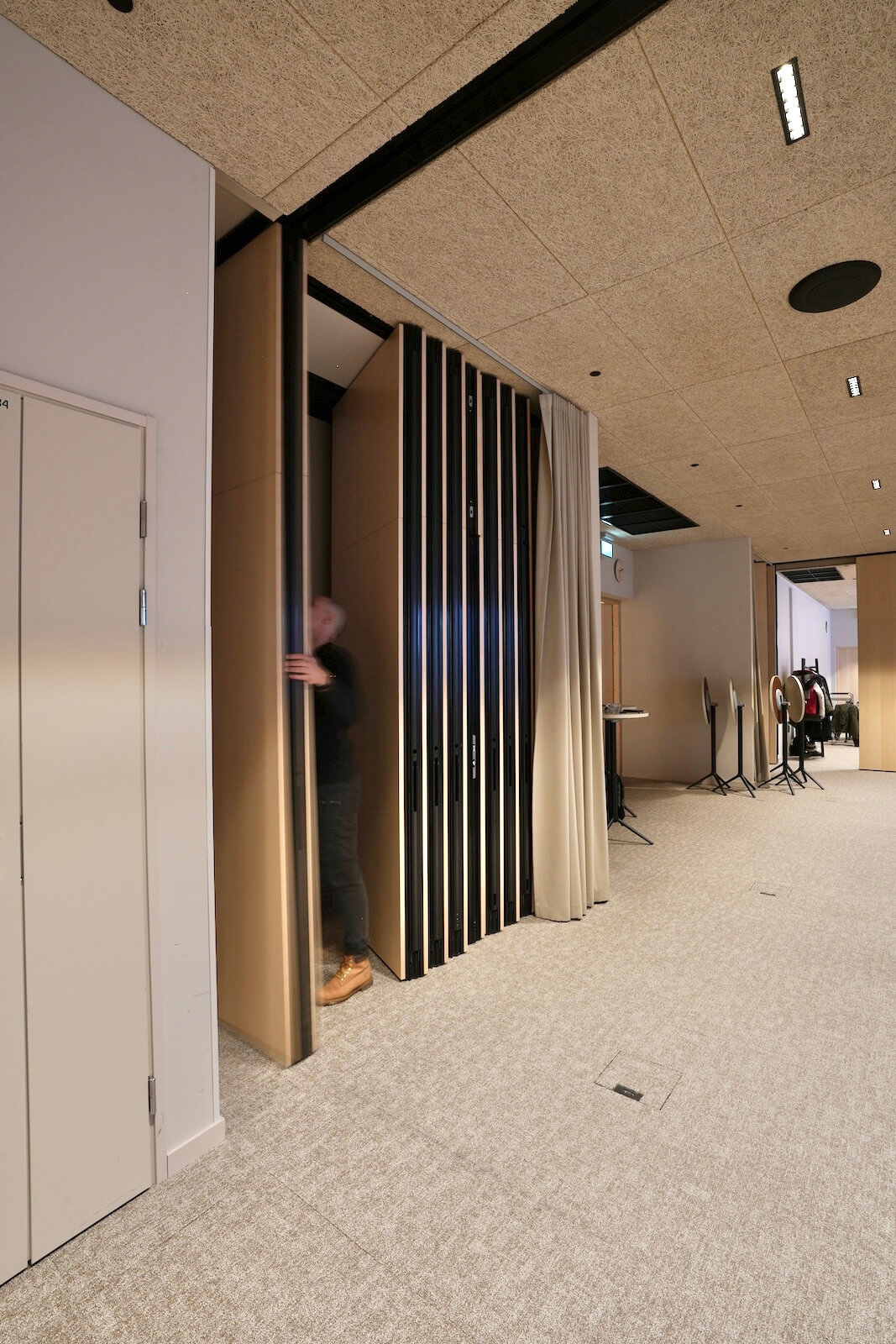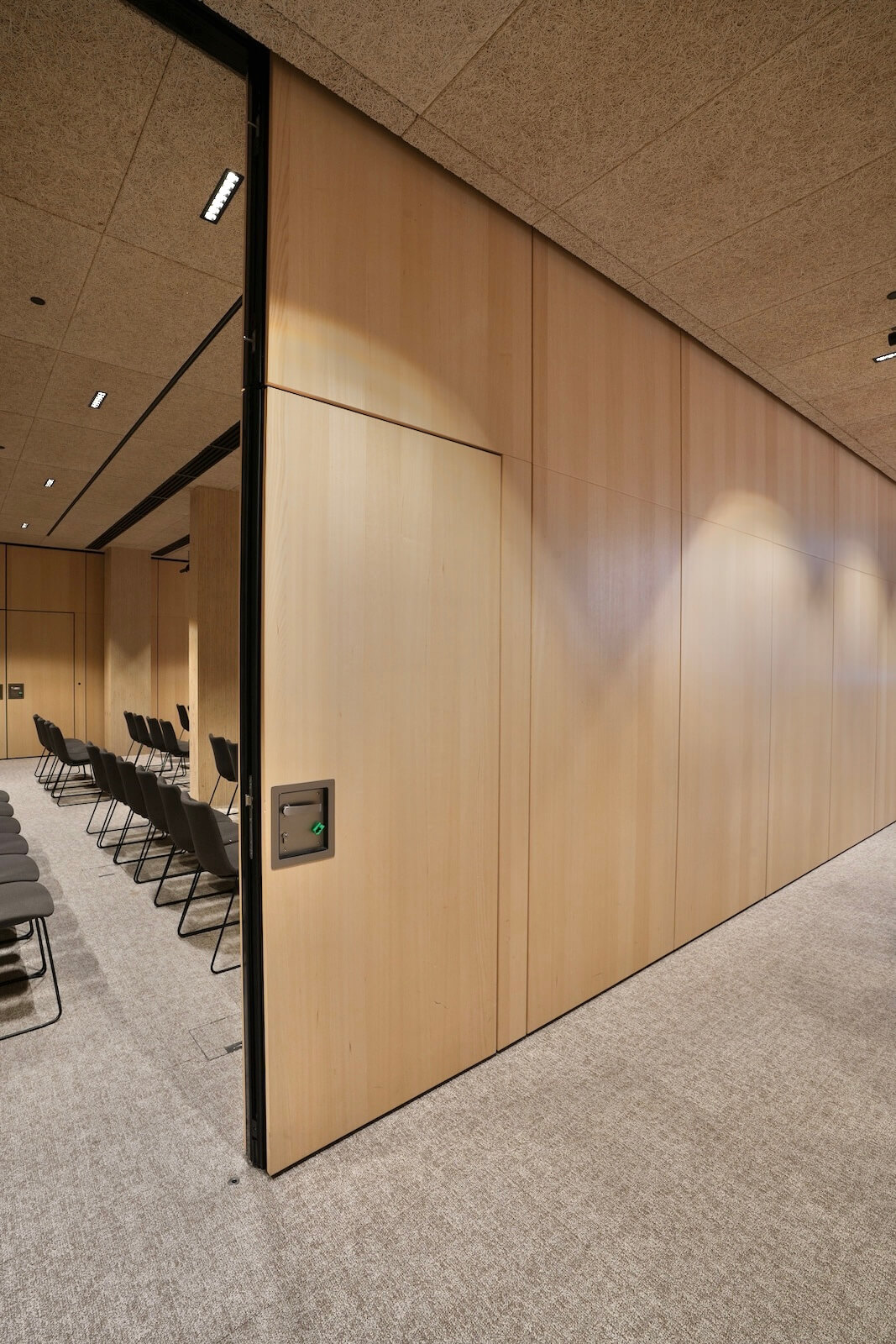 Kohteeseen toimitetut HUFCOR-siirtoseinät ovat poikkeuksellisen suuria, leveydeltään 12 metriä ja korkeudeltaan 4,5 metriä. Lattiasta holviin yltävät siirtoseinät on toteutettu omalla otsarakenteella. Rakenne on toteutettu siten, että silloin kun ovipaneelit eivät ole käytössä, ne voidaan varastoida vinottain tilan säästämiseksi. Yksi seinäkokonaisuuksista toimitettiin kahdella varastointialueella, jotta käyttäjät voivat valita tilantarpeen mukaan, mille puolelle tilaa ovipaneelit varastoidaan.