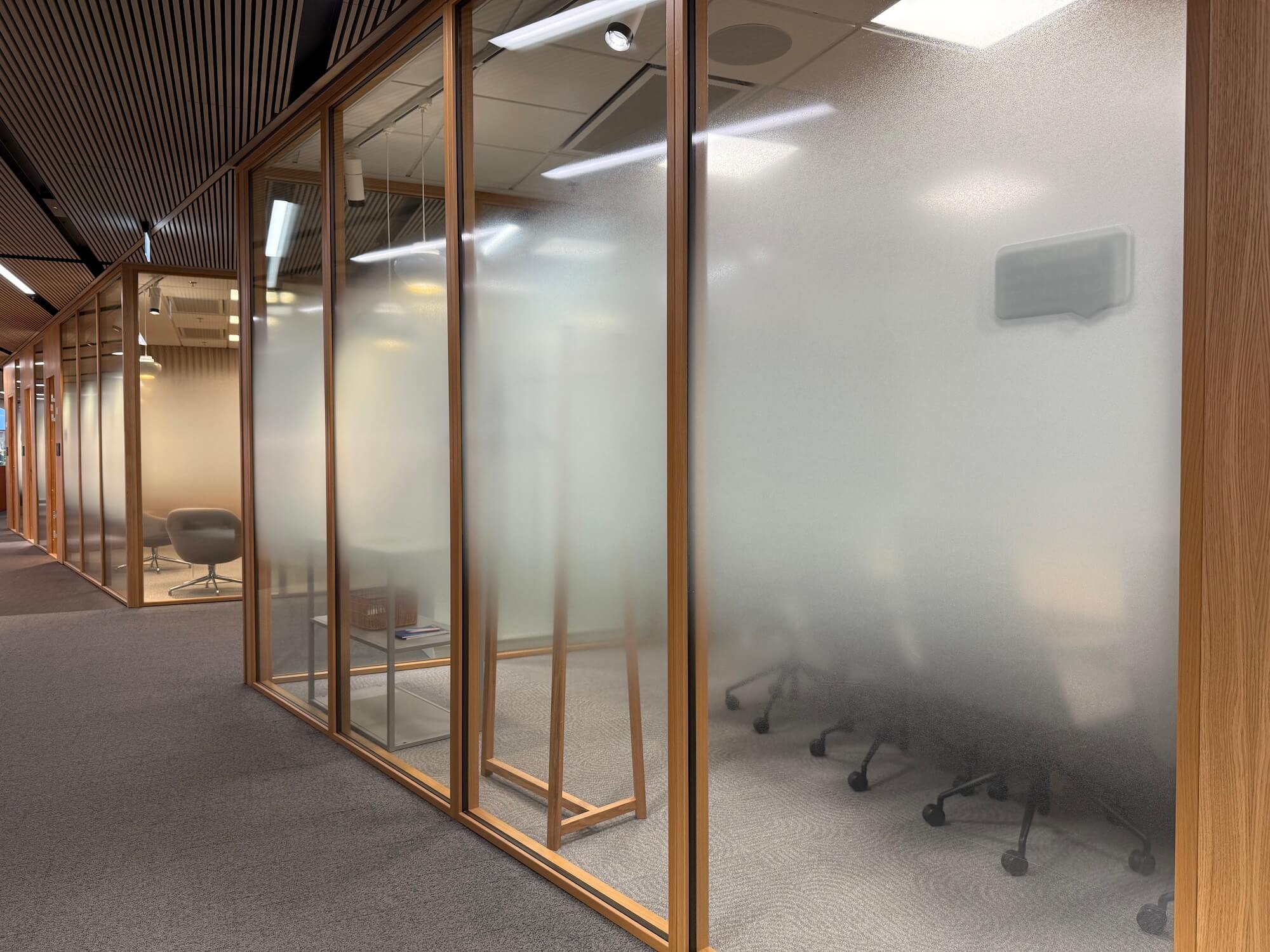 Laadukkailla lasiseinillä pääkonttoritason tiloja